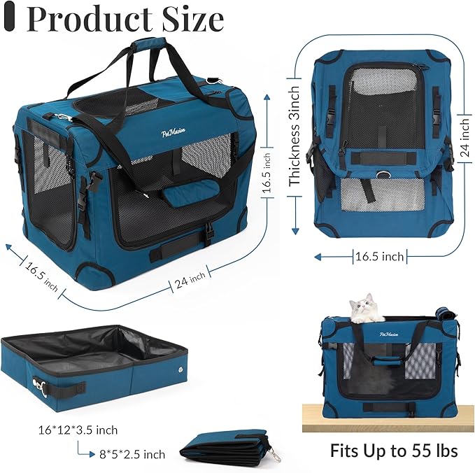 - Large Capacity and Size: Measuring 24” x 16.5” x 16.5”, this carrier is ideal for medium to large cats, or even multiple cats, with a maximum weight capacity of 55 lbs. The spacious interior meets all your cat's needs, ensuring they feel comfortable and at ease. This soft sided carrier with litter box acts like a mobile home, whether in the bedroom, car, or on the go