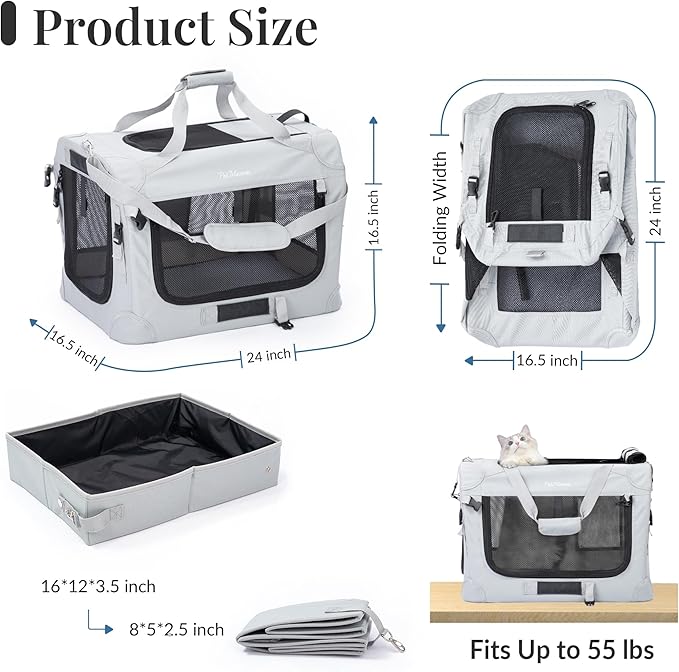 - Large Capacity and Size: Measuring 24” x 16.5” x 16.5”, this carrier is ideal for medium to large cats, or even multiple cats, with a maximum weight capacity of 55 lbs. The spacious interior meets all your cat's needs, ensuring they feel comfortable and at ease. This soft sided carrier with litter box acts like a mobile home, whether in the bedroom, car, or on the go