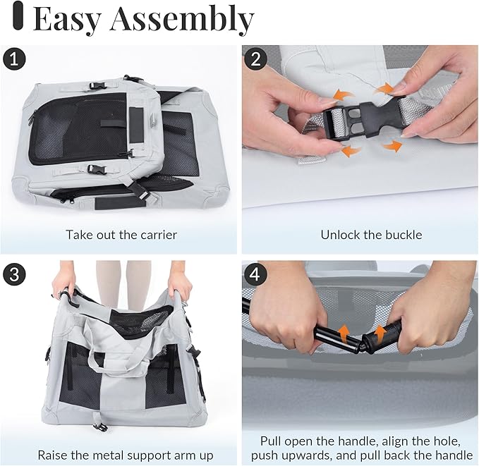 - Safety First: Featuring a sturdy metal frame and wear-resistant mesh, the carrier ensures durability. Safety clips on each zippered section prevent accidental openings. Four safety belt clips ensure your pet’s safety in the car. The waterproof bottom liner means you don’t have to worry about messy car clean-ups