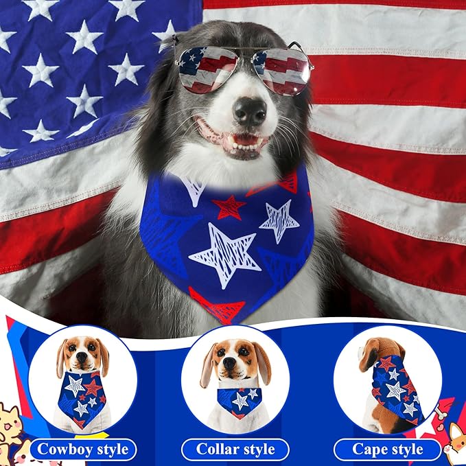 Sanwuta 72 Pcs Patriotic Dog Bandana Bulk Washable Puppy Triangle Scarfs Veterans Day Cat Bandanas Adjustable Soft Cute Pet Triangle Bibs Accessories for Small Medium Dogs Cats Pets Costume