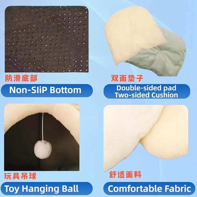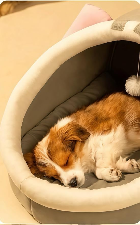 - Enclosed Cave Hideaway + Playful Accents Features a cozy cave - shaped entrance (satisfies pets’ nesting instinct!) with adorable pink cat ears and a hanging white pom - pom (as shown in product images). Perfect for cats/small dogs seeking security, while the pom - pom sparks swatting and pouncing fun.