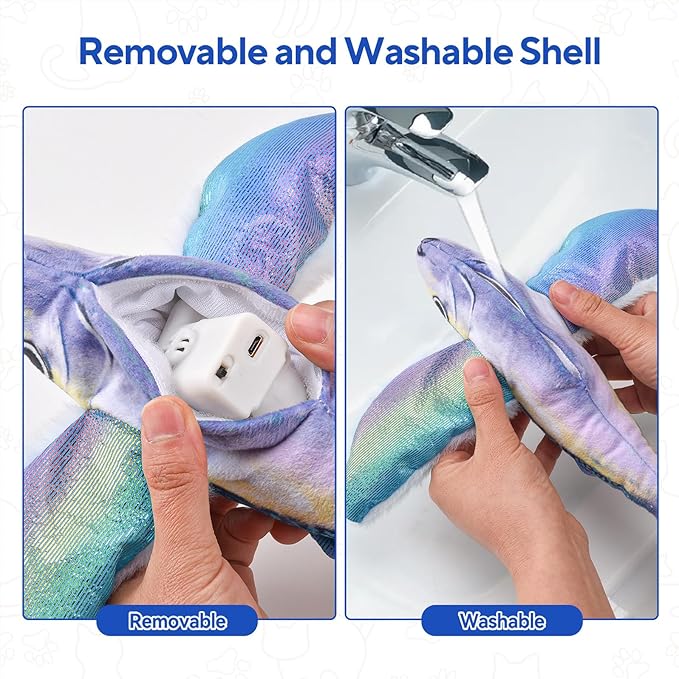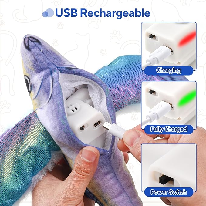 - 【USB Rechargeable】: Charges fully in just 1 hour and delivers 280 exciting movement cycles per charge. For best results, make sure to fully charge your new cat fish toy and turn the switch to ON side before playtime.