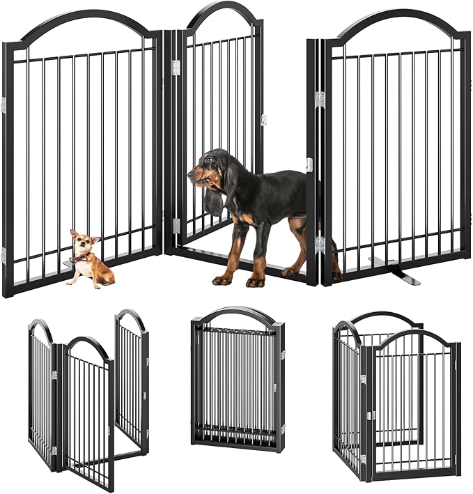 - 【METAL DOG GATES】Our pet fence is made of thick metal pipes, which are more durable than plastic and wooden fences. The metal fence is not afraid of dogs' biting and scratching, so you can be more at ease.