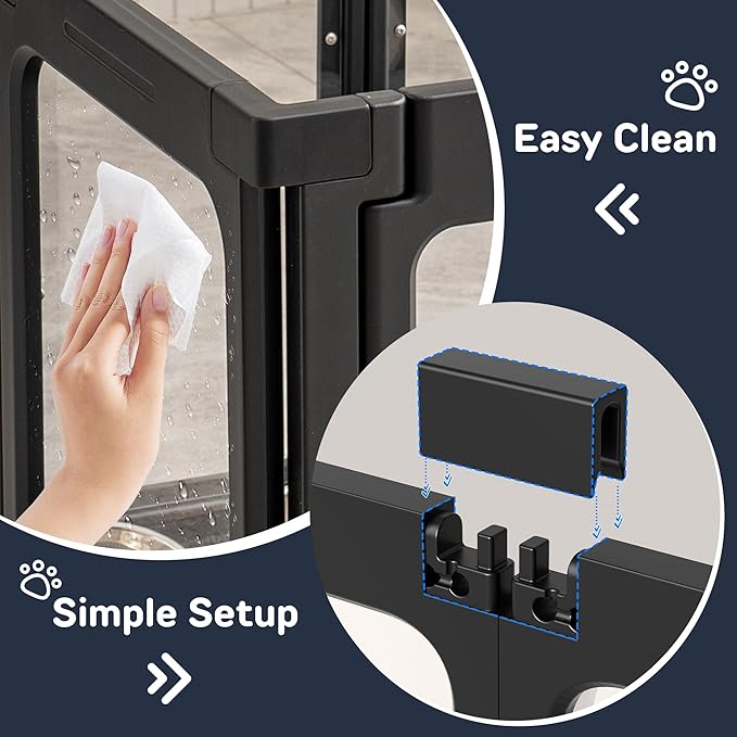 - 🐶【Customizable Pet Playpen】The modular design of the indoor dog kennel allows for customization to fit your space and pet's needs. Add extra panels to expand the area as your pet grows or your family expands. This flexibility, combined with our dog playpen indoor's stylish and practical features, makes it a must-have for pet owners.