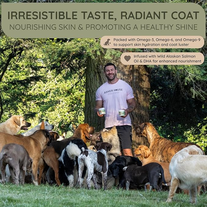 - ๐ก๐ผ๐๐ฟ๐ถ๐๐ต ๐๐ผ๐๐ฟ ๐๐ผ๐ด'๐ ๐๐ผ๐ฎ๐: Support your dogโs skin and coat with a powerful blend of Omega-3, 6 & 9 fatty acids from Wild Alaskan Salmon Oil and DHAgold algae. These healthy fats deeply hydrate, nourish, and add a luxurious softness and shine to your dogโs coatโenhancing skin health and those special bonding moments year-round.
