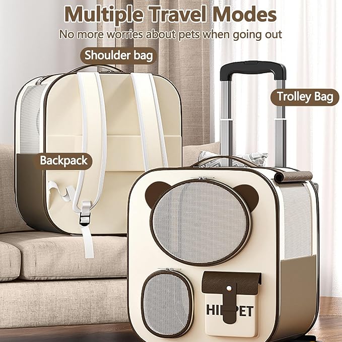 Pet Backpack with Wheels, Comfort Cat Backpack Removable Rolling Wheels, Pet Rolling Carrier, Dog Backpack Great for Travel/Hiking/Outdoor Use(Blue)