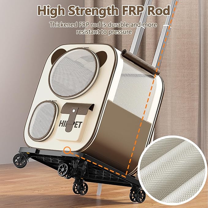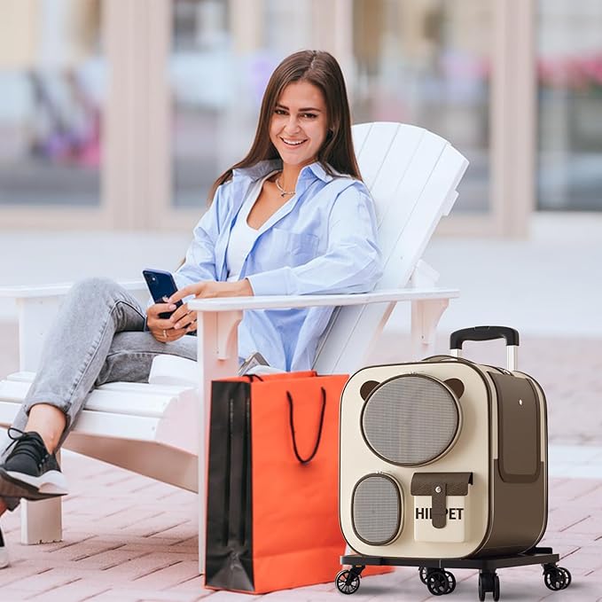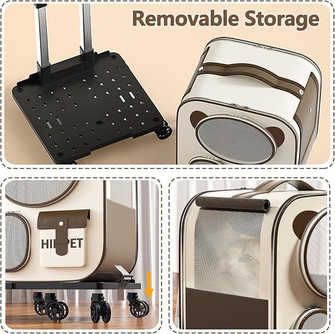 Pet Backpack with Wheels, Comfort Cat Backpack Removable Rolling Wheels, Pet Rolling Carrier, Dog Backpack Great for Travel/Hiking/Outdoor Use(Brown)