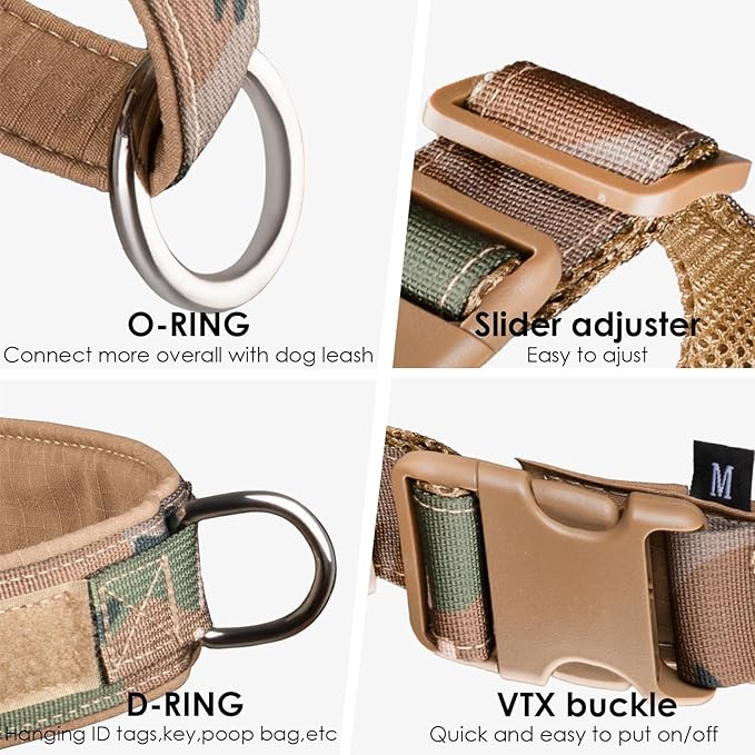 - Easily to Put ON/ OFF-The dog body harness use of VTX load-bearing buckle, simple and quick to use, cold and high temperature resistance, not easily to deform, compact structure, to prevent dogs from escaping.