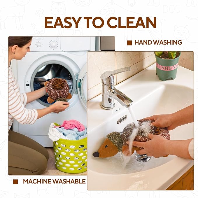 - 【Note】This hedgehog dog toy is not recommended for powerful chewers. Always supervise playtime, and if your dog shows aggressive chewing behavior, redirect their attention to the treat-seeking or squeaker features to help protect their safety and prevent them from swallowing any stuffing.