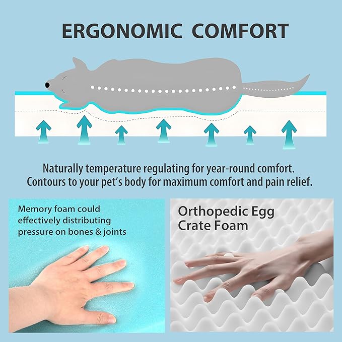 - ✔ Orthopedic Comfort - Designed to provide your pet with unparalleled support for a deep, dreamy night's sleep. The high-density memory foam evenly distributes weight and provides just the right amount of pressure relief.