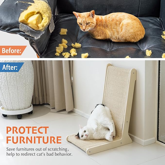 - NATURAL SISAL: Features safe & natural sisal mat, this scratcher is ideal for cats who love to scratch. It helps keep your cats’ claws healthy while engaging them in active play.