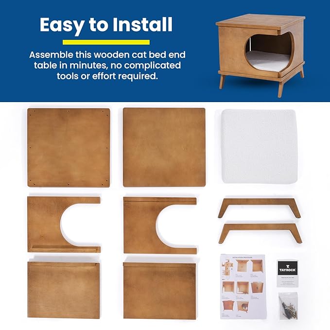 - ๐๐ฎ๐ข๐๐ค & ๐๐ข๐ฆ๐ฉ๐ฅ๐ ๐๐ฌ๐ฌ๐๐ฆ๐๐ฅ๐ฒ: Assemble this wooden cat bed end table in minutes, no complicated tools or effort required. A functional, pet-friendly nightstand thatโs ready to use almost instantly
