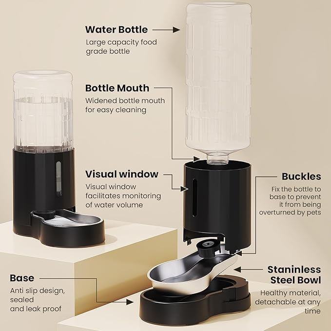 - [Hands-Free Automatic Refilling]:Gravity does the work! Water flows automatically as your pet drinks – no plugs or cords needed. The see-through reservoir lets you monitor water levels at a glance.