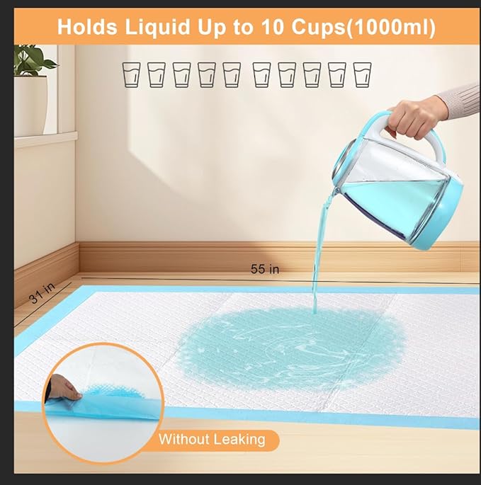 - Extra Large Size: Dog Pee Pads Extra Large 31" ×55",Won'T Have To Worry The Pads Being Too Small Or Frequently Replaced.No More Worrying About Leaks Or Accidents Outside The Pad Area