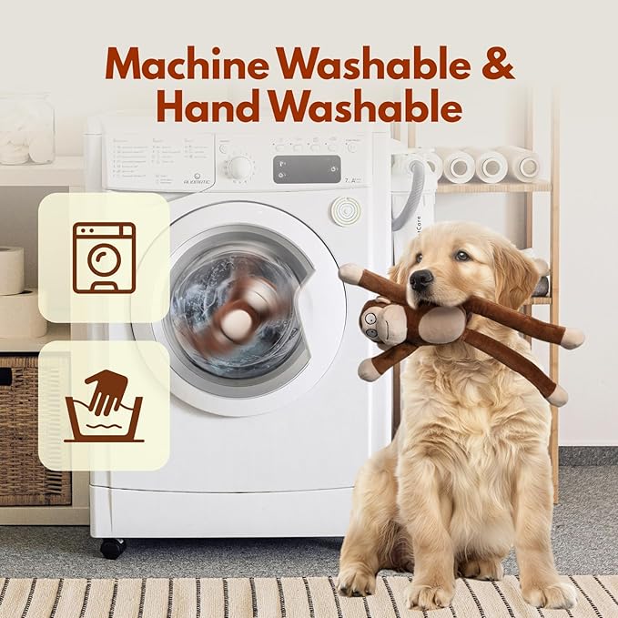 Squeaky Dog Toys with Crinkle Paper Durable Tug of War Monkey Plush Dog Toy with Soft Fabric for Small Middle and Large Dogs