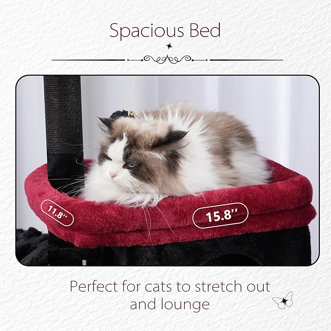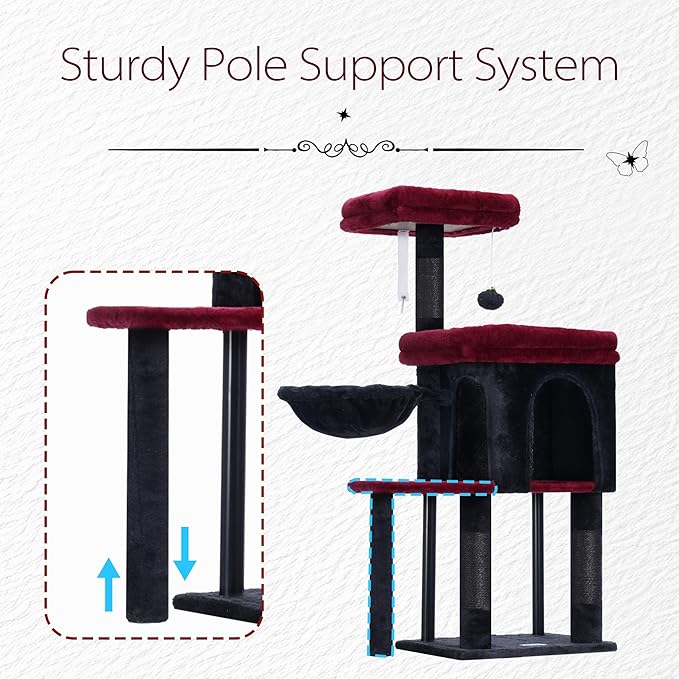 Hey-brother Cat Tree Tower, Scratching Posts with Cozy Condo, Padded Bed, Hammock, Plush Perch, Sisal Post and Ball for Indoor Kittens, 44.9 Inches, Black and Red MPJ009SBR