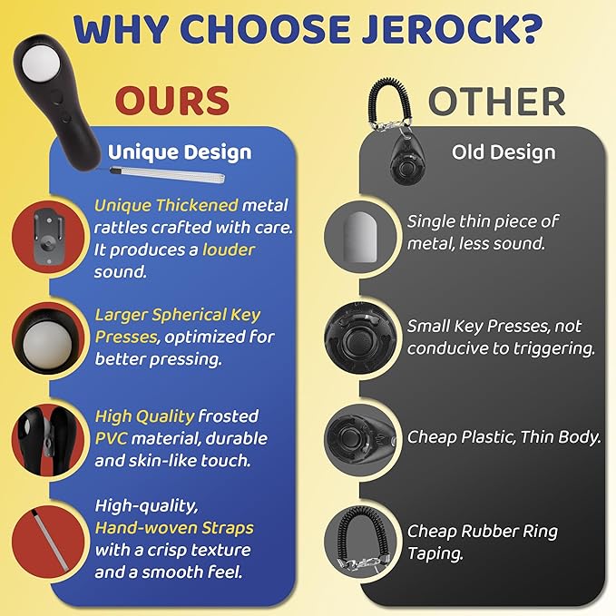 - New Design – Larger buttons: more convenient to press and easy to use; Bigger & clearer sound: the trainer is designed with better metal rattles and openings on the back, which allows for bigger and clearer sound; New mold: grip type mold and frosted surface make you more handy.