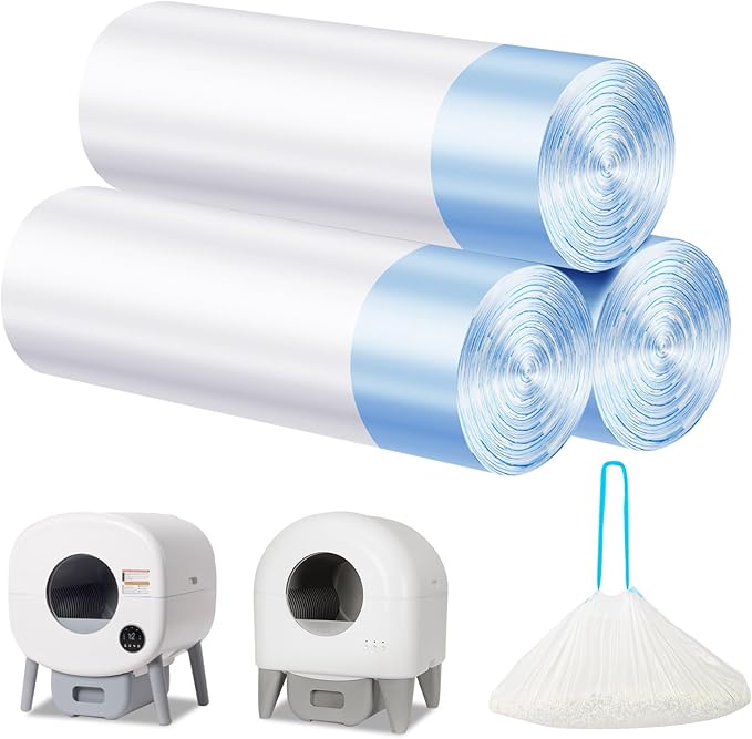 - 【Perfect Fit for Automatic Litter Boxes】These cat litter liners Sized at 26.37"x15.74" are crafted to fit most automatic litter boxes seamlessly, offering efficient waste collection and ensuring a smooth cleanup process. The convenient drawstring design allows for quick, secure disposal—just remove, tie, and toss. These litter bags make maintaining your cat’s litter box effortless, keeping your home clean and odor-free.