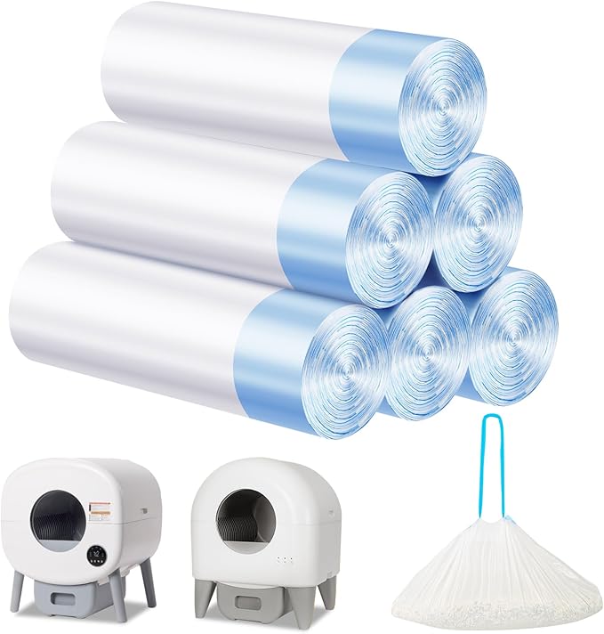 - 【Perfect Fit for Automatic Litter Boxes】These cat litter liners Sized at 26.37"x15.74" are crafted to fit most automatic litter boxes seamlessly, offering efficient waste collection and ensuring a smooth cleanup process. The convenient drawstring design allows for quick, secure disposal—just remove, tie, and toss. These litter bags make maintaining your cat’s litter box effortless, keeping your home clean and odor-free.