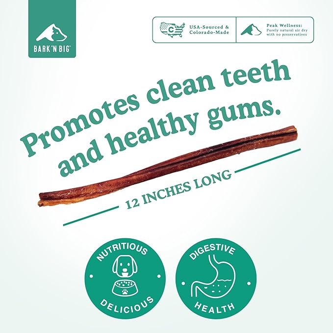 BARK'N BIG 12 Inch Odor Free Bully Sticks for Dogs Made in USA - Single Ingredient Dog Chew - Premium Pizzle Sticks - Beef Pizzles for Large Breeds - 8 Count