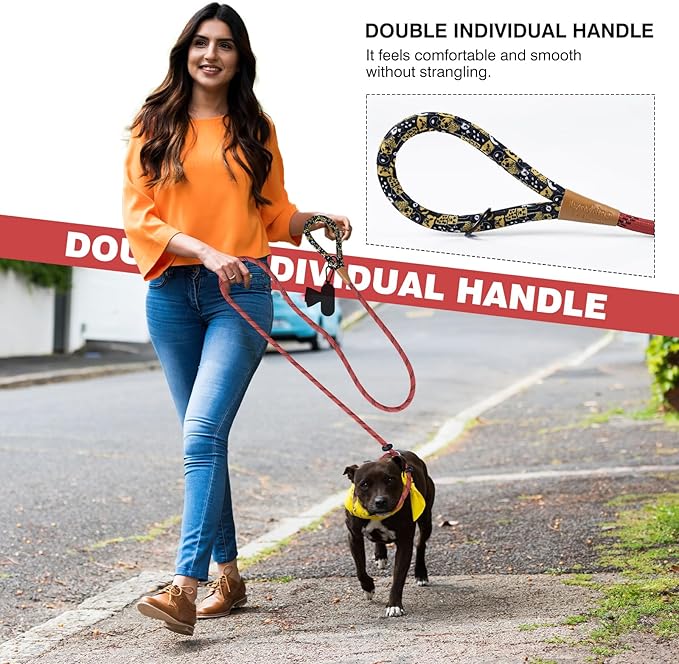 - (Reflective for Night Walking) The reflective straps on the entire rope leash ensures great visibility during night walk or jogging