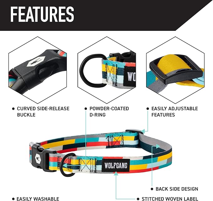 - Made for Durability: Wolfgang dog accessories are made with premium craftsmanship, designed to stand up to daily use and the toughest conditions. The durable polyester webbing resists wear and tear, while the adjustable fit ensures a secure and comfortable experience for your dog