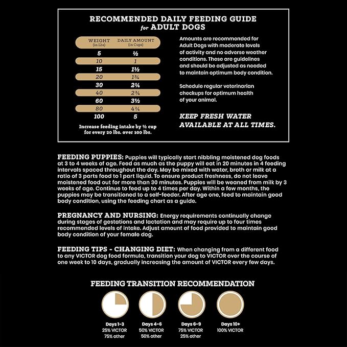 - MADE IN THE USA: We proudly produce every bag of VICTOR kibble in our own Texas-based facility and do not waver in our commitment to high-quality nutrition. A majority of ingredients of our pet food come from ranches, farms and other trusted suppliers who are within a day’s drive of our East Texas plant.