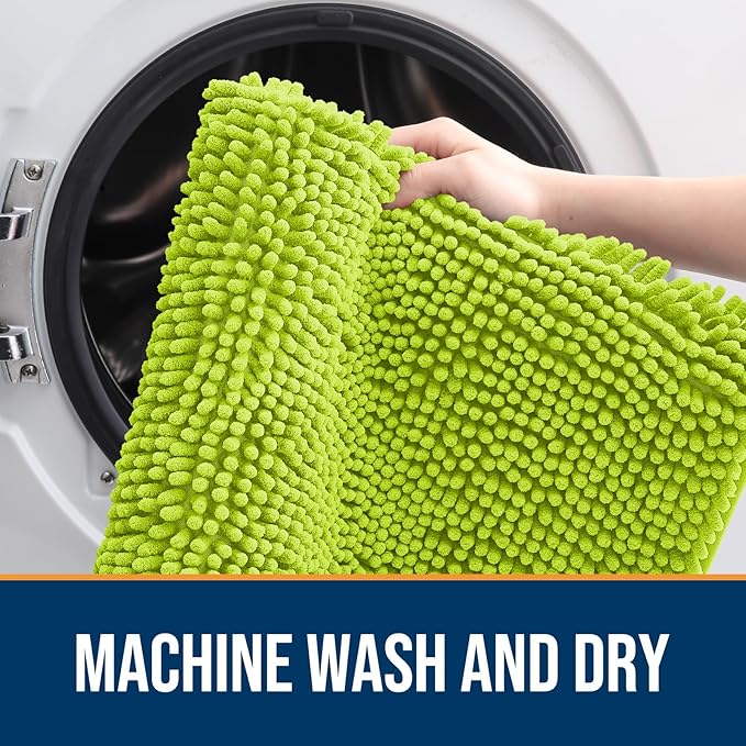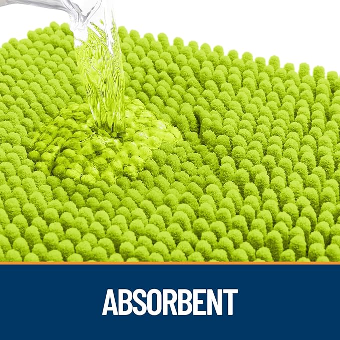 OLANLY Dog Door Mat for Muddy Paws 36x24, Absorbs Moisture and Dirt, Absorbent Non-Slip Washable Doormat, Quick Dry Chenille Mud Mat, Entry Indoor Entryway Carpet for Inside Floor, Bright Green