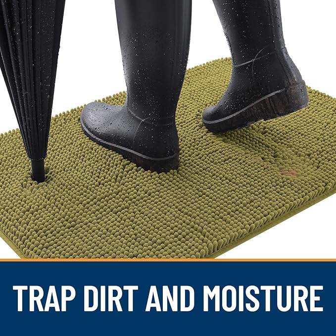 OLANLY Dog Door Mat for Muddy Paws 44x24, Absorbs Moisture and Dirt, Absorbent Non-Slip Washable Doormat, Quick Dry Chenille Mud Mat, Entry Indoor Entryway Carpet for Inside Floor, Willow Green