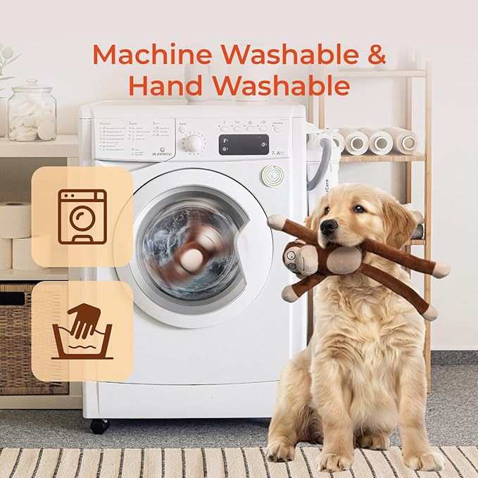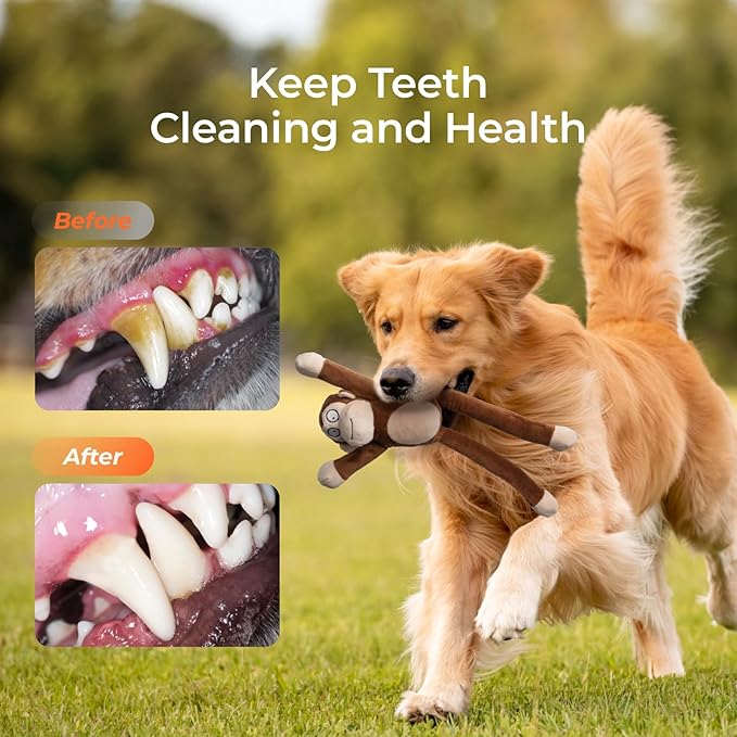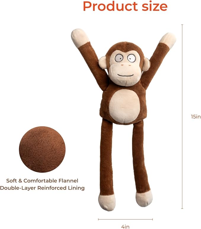 - 【CUTE MONKEY DESIGN】Stretchable arms & legs for tug-of-war fun, keeping dogs curious and active