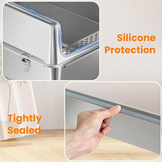 - Full Metal Stainless Steel Construction: Crafted entirely from high-quality stainless steel, this cat litter box is rust-resistant and built to last, offering a durable and reliable solution for pet waste management.