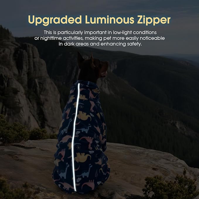 ROZKITCH Large Dog Pajamas Soft Fleece Pullover Pajamas, Pet Windproof Warm Cold Weather Jacket Vest with Reflective Zipper, Jumpsuit Apparel Outfit Clothes for Large Dog Dinosaur XL