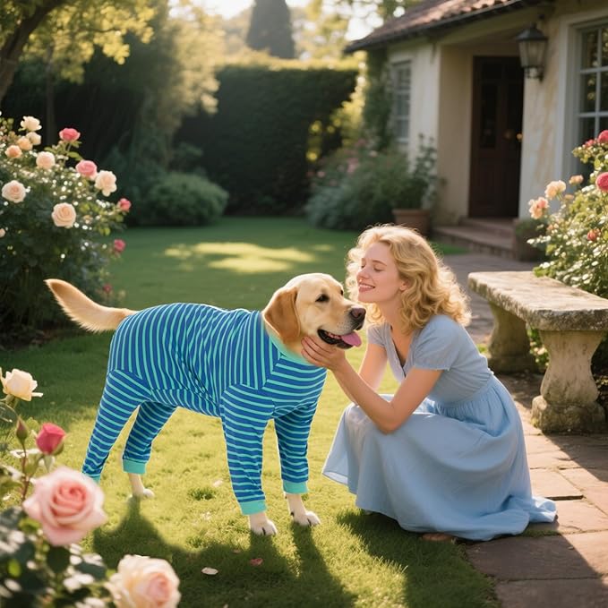 Yeapeeto Dog Onesie Surgery Recovery Suit for Large Medium Bodysuit Dogs Pajamas PJS Full Body for Shedding, Prevent Licking, Wound Protection, Cone Alternative… (Blue Green, 3XL)