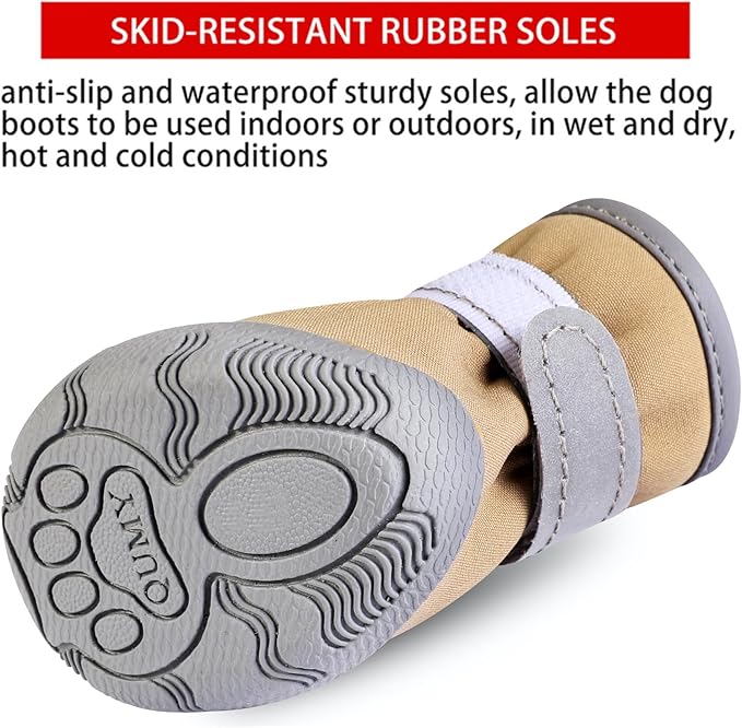 QUMY Dog Shoes for Small Dog, Puppy Dog Boots & Paw Protectors for Winter, Summer Hot Pavement, Waterproof in Rainy Weather, Ourdoor Walking, Indoor Hardfloors Skid-Resistant Soles Khaki Size 2