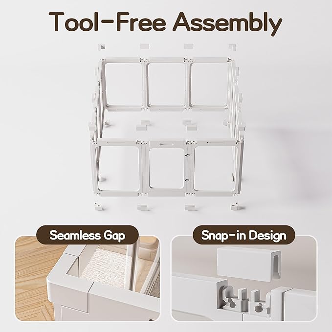 - 【Easy to Clean】The smooth surface of this acrylic dog playpen makes cleaning easy. As a puppy playpen indoor, it resists stains and bad smells, helping to keep your pet’s space clean and healthy.