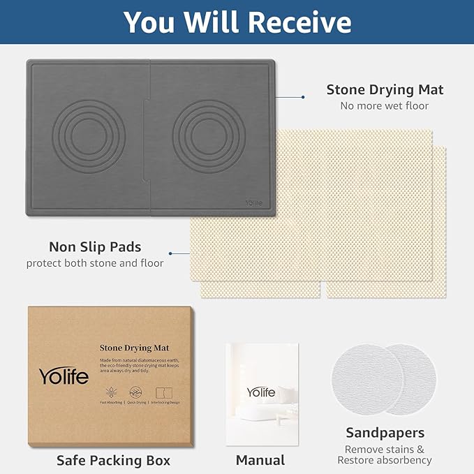 - EXTRA LARGE FOR SLOPPY DRINKERS: Yolife 31.5" x 19.7" (L x W) stone dog bowl mat is 60% larger than other stone mat for dog bowls on the market. Larger coverage helps catch more water so you don't have to put another rug under it to catch the spills. Effectively safeguards your floors (especially the wood floors) from water damage