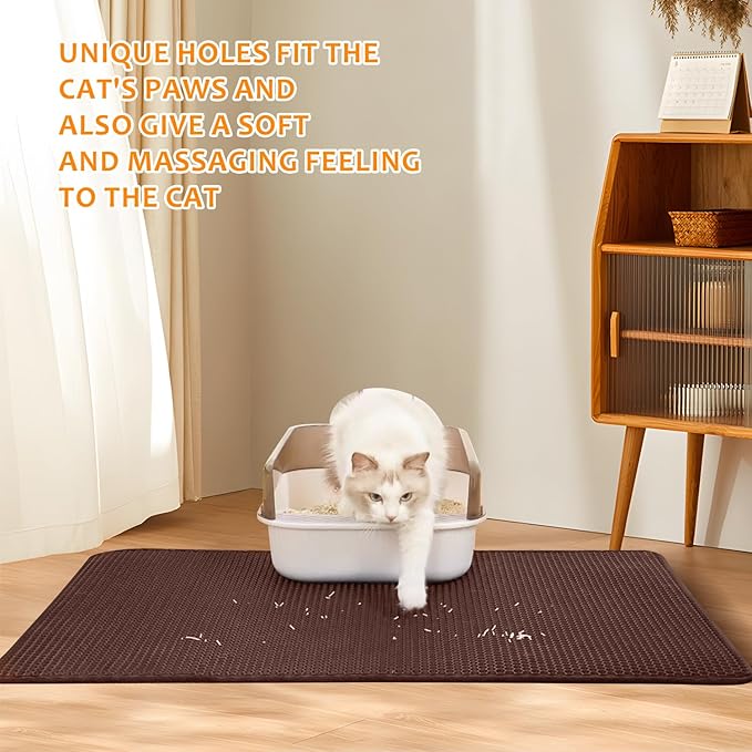 28"x48" Cat Litter Mat, EVA & Fabric Double Layer Design Waterproof Bottom Cat Litter Mat,Anti-slip Litter Box Mat,Easy To Catch Pet Litter,Easier To Clean,Washable,Soft on Paws,Large Capacity,Brown
