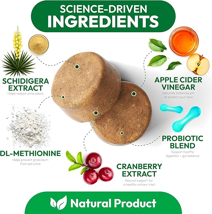 - Protects Your Lawn from Yellow Spots: These grass burn spot chews for dogs help prevent unsightly yellow patches caused by dog urine, supporting a greener, healthier lawn all year round.