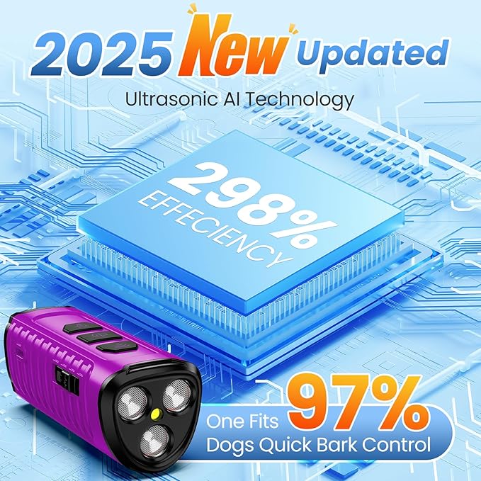 - 3X Ultrasonic Tech – Safer, Faster, More Effective: Dog Bark Deterrent Device, Barks no more dog training device. No more annoying constant barking! with Triple Ultrasonic Emitters, Our Dog Bark Deterrent Device provide faster training results with Zero Pain, No Stress. Two ultrasonic frequency (Fixed 25kHz + Variable 22-29kHz), our Anti Barking Device for Dogs prevents dogs from adapting to a single frequency, ensuring long-term effectiveness.