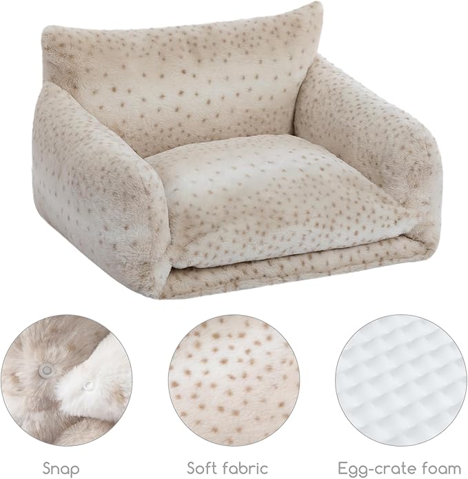 Hollypet Cat Bed Fluffy Plush Mutifuctional Double-Layer Soft Pet Couch Orthopedic Sofa Nest Beds for Small Cats and Dogs, Leopard (25x20x13 inch)
