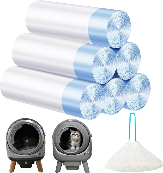 - 【Perfect Fit for Automatic Litter Boxes】These cat litter liners Sized at 21.65"x11.8" are crafted to fit most automatic litter boxes seamlessly, offering efficient waste collection and ensuring a smooth cleanup process. The convenient drawstring design allows for quick, secure disposal—just remove, tie, and toss. These litter bags make maintaining your cat’s litter box effortless, keeping your home clean and odor-free.