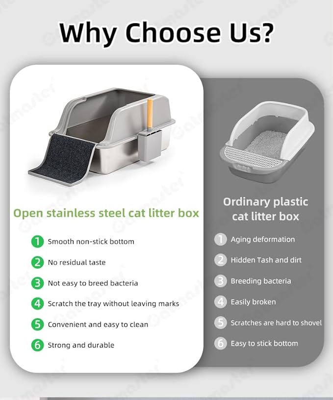 - Easy to Clean: Non stick metal cat litter box makes cleanup is quick and easy, and the litter slides right out and washing it as a breeze