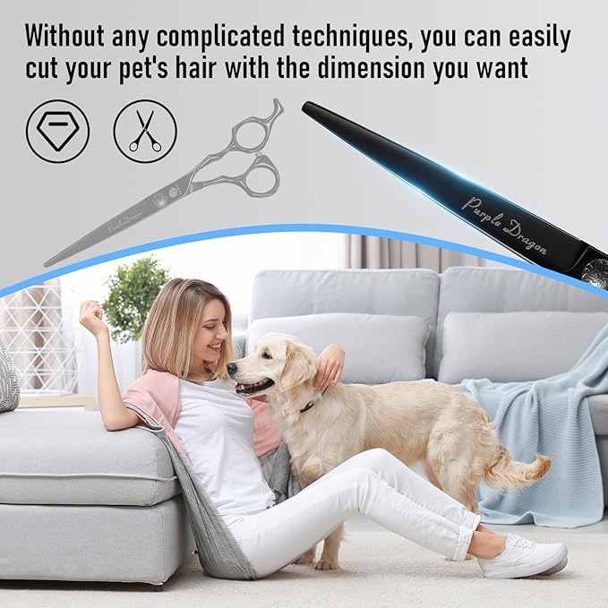 - Precision-Crafted Japanese 440C Steel Blades These professional-grade Purple Dragon shears feature premium Japanese 440C stainless steel with vacuum heat treatment for exceptional edge retention and corrosion resistance, ensuring razor-sharp performance through countless grooming sessions