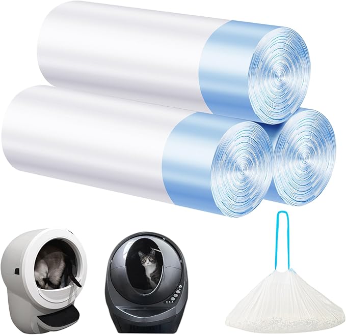 - 【Perfect Fit for Automatic Litter Boxes】These cat litter liners Sized at 26.37"x15.74" are crafted to fit most automatic litter boxes seamlessly, offering efficient waste collection and ensuring a smooth cleanup process. The convenient drawstring design allows for quick, secure disposal—just remove, tie, and toss. These litter bags make maintaining your cat’s litter box effortless, keeping your home clean and odor-free.
