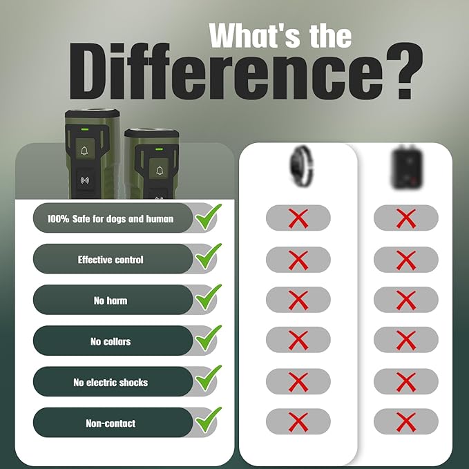 - Dog Bark Control & Behavior Training: This anti-barking control device for dogs,offers 3 different modes,each designed to achieve a goal—to instantly capture your dog’s attention and discouraging unwanted behaviors.Three modes--ultrasonic, sound, and ultrasonic + flashlight—which can be used alternately for the best results.100% safe,You'll be amazed at how quickly and painlessly your pup responds to this innovative no-bark training device.