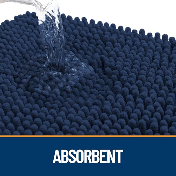 OLANLY Dog Door Mat for Muddy Paws 44x24, Absorbs Moisture and Dirt, Absorbent Non-Slip Washable Doormat, Quick Dry Chenille Mud Mat for Dogs, Entry Indoor Entryway Carpet for Inside Floor, Dark Blue