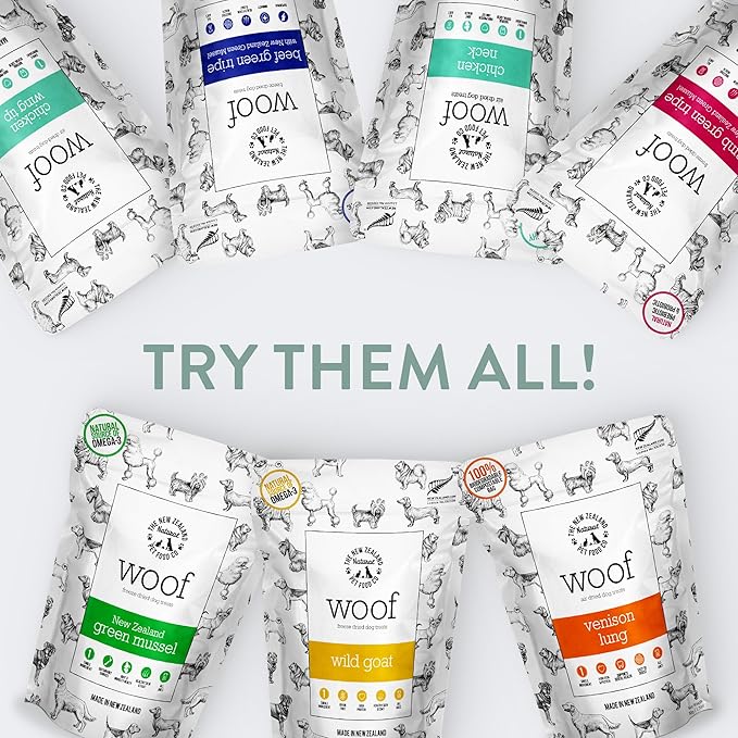 Air Dried WOOF Chicken Neck Treat - Mixer, or Topper - Air Dried, High Protein,Natural, Single Ingredient - 1.76oz
