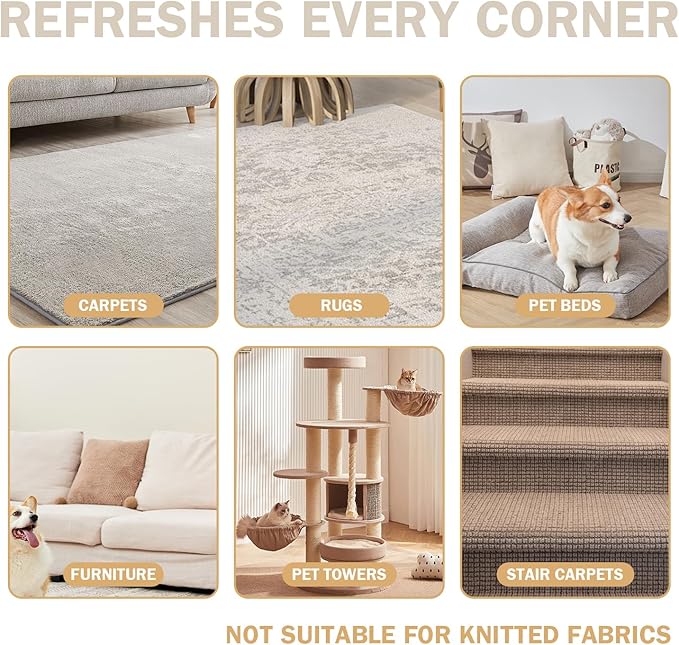 - 【EASY ASSEMBLY & STORAGE】Quick-twist lock system for effortless setup. Detachable carpet cleaner brush head fits in closets—ideal for dog hair rake and cat hair remover furniture storage. A must-have lint plus pet hair remover for pet owners!