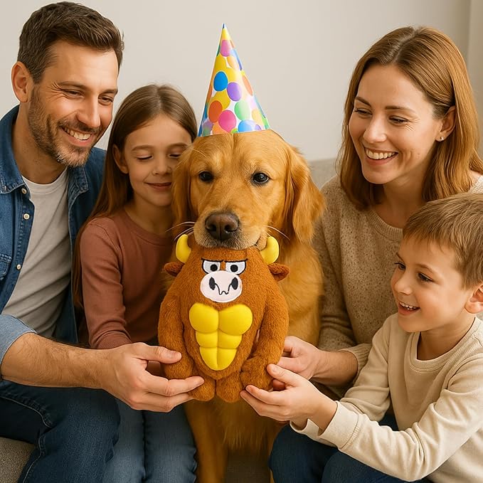 Tough Dog Toys for Heavy Chewers, Interactive Plush Dog Chew Toys with Rubber Muscles, Squeak Dog Toys for Aggressive Chewers, Dog Toy for Small Medium Large Breed (Hercules Cow)