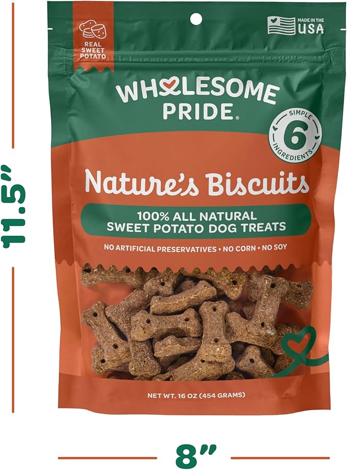 Wholesome Pride Nature’s Biscuits Dog Treats - Crunchy, Natural, Limited Ingredient, Grain-Inclusive Recipe with Fiber‑Rich Sweet Potato - Mini Bone-Shaped Treats for Dogs - 16 oz Bag